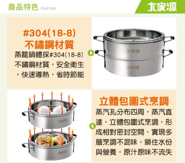 ★#304(18-8)不鏽鋼雙層蒸籠,堅固耐用、衛生安全。