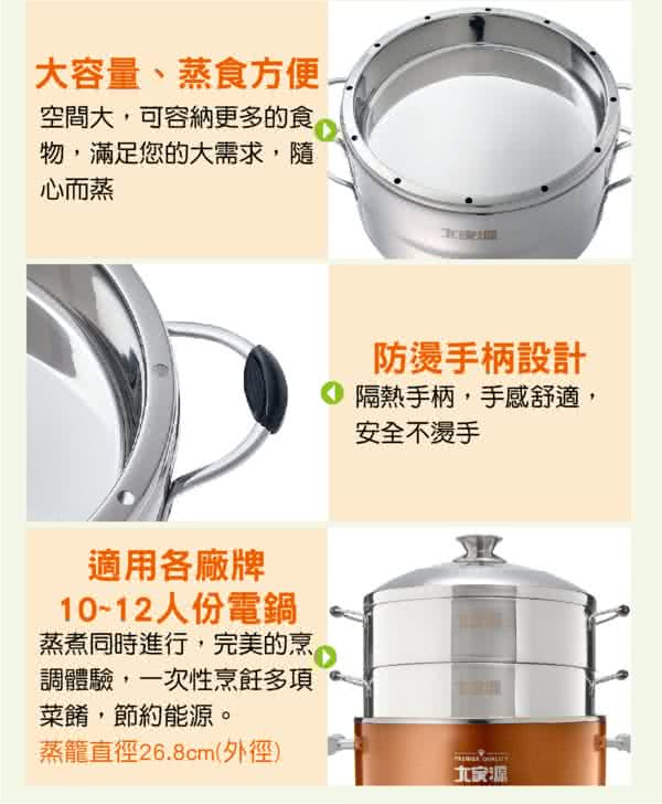 ★適用各廠牌10-12人份電鍋,蒸籠直徑26.8cm(外徑)