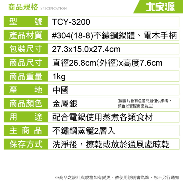 【大家源】304不鏽鋼原味蒸籠-適12人份電鍋(TCY-3200)品質好嗎故障率高嗎還有什麼缺點