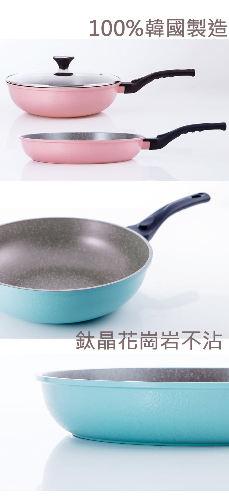 【Queen Chef】韓國礦岩鈦合金鑄造不沾雙鍋 30CM 4件組(炒鍋+平底鍋+蓋+竹鏟)可以煎魚煎牛排嗎可以炒蛋嗎可以煮水餃嗎