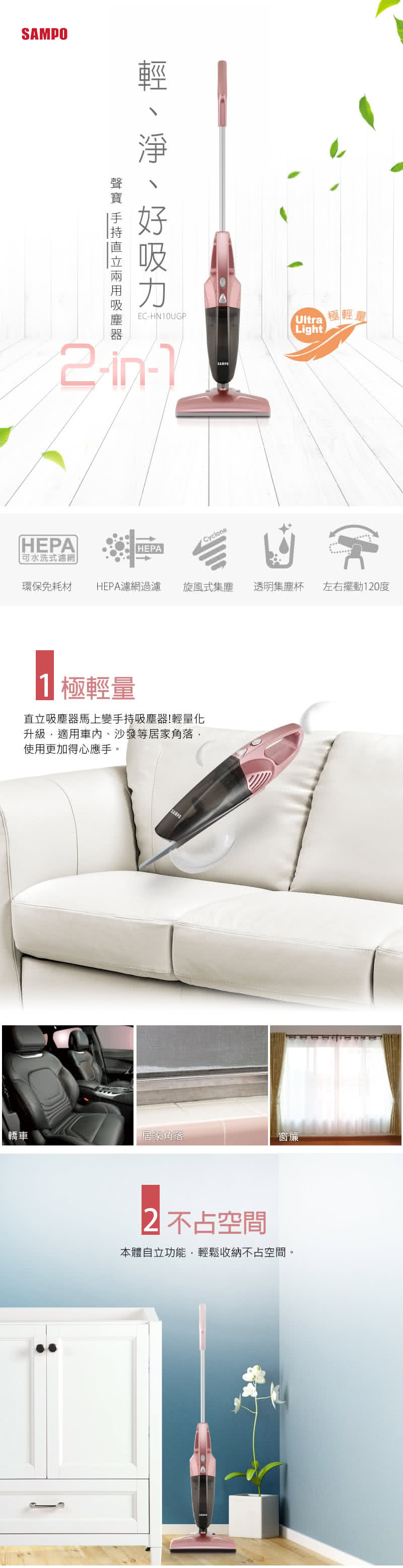 【SAMPO 聲寶】手持直立兩用吸塵器(EC-HN10UGP)種類規格怎麼看便宜嗎cp值高嗎