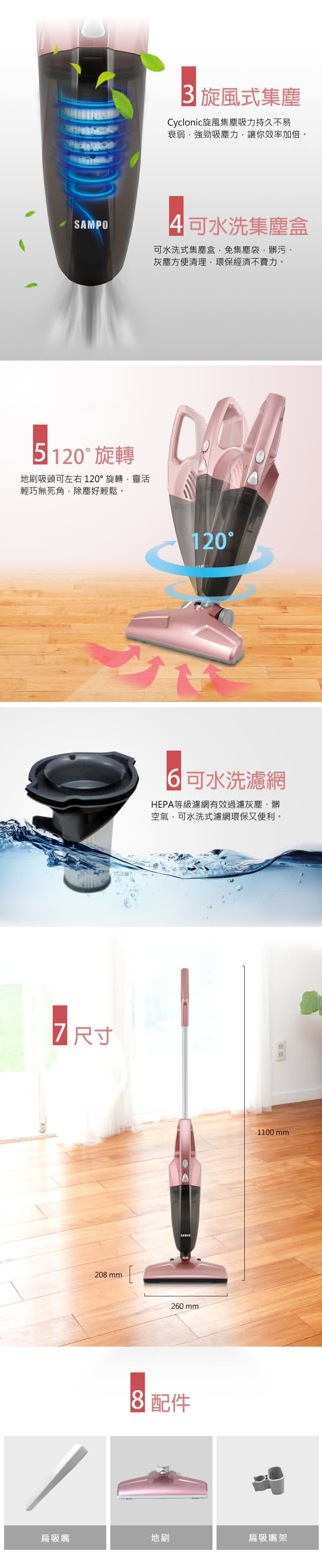 【SAMPO 聲寶】手持直立兩用吸塵器(EC-HN10UGP)可以去除塵螨嗎耗電量高嗎清潔容易嗎